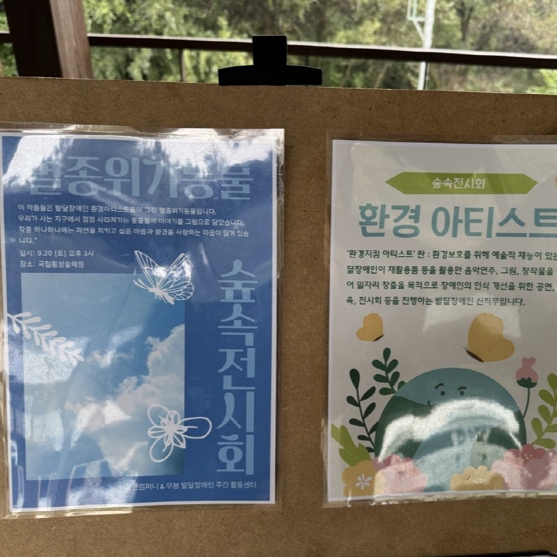 한국산림복지진흥원과 기적적으로 연계되어 9월 20일(토) 횡성숲체원에서 발달장애인과 가족을 대상으로 숲속에서 준비한 공연과 멸종위기 동물을 주제로 재활용품을 활용해 그린 작품을 전시하는 ‘숲속전시회’를 진행하였습니다.