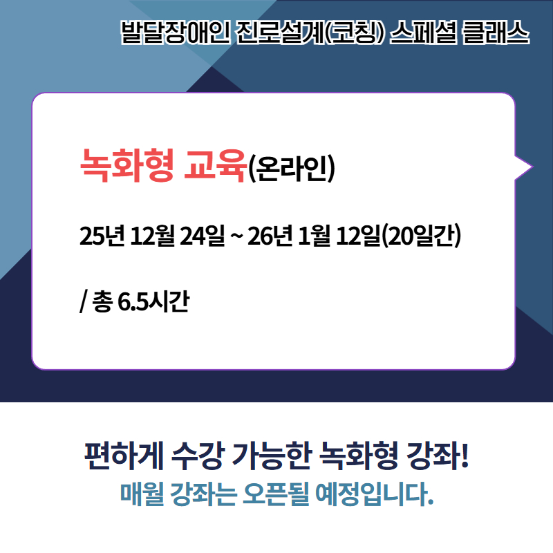 발달장애인 진로설계(코칭) 스페셜 클래스(녹화형)-12월